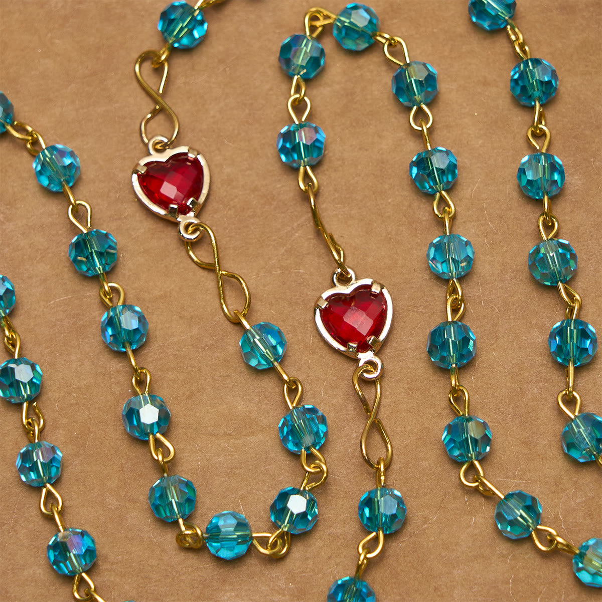 Il nostro rosario è caratterizzato da grani blu brillante, simbolo di tranquillità e devozione. I colori vivaci e la consistenza unica dei grani aggiungono una dimensione di pace e arricchimento alle vostre preghiere. La morbidezza dei grani è rassicurante al tatto, esaltando la vostra esperienza di preghiera con la loro presenza confortante. - Sacro Cuore di Gesù e Crocifisso