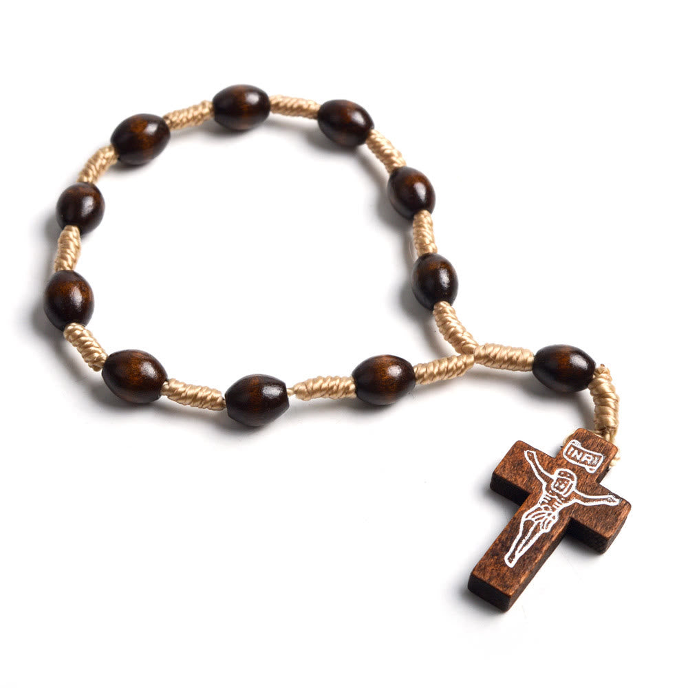 Mini rosario in legno massello per battesimo con dita incrociate