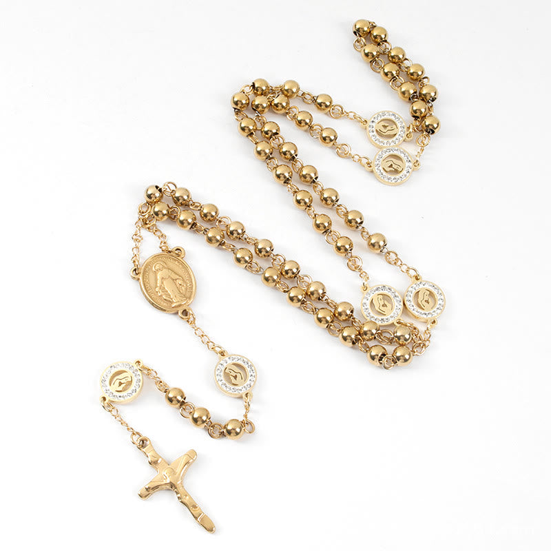 Rosario in zirconia lavorato a mano a tema Vergine Maria
