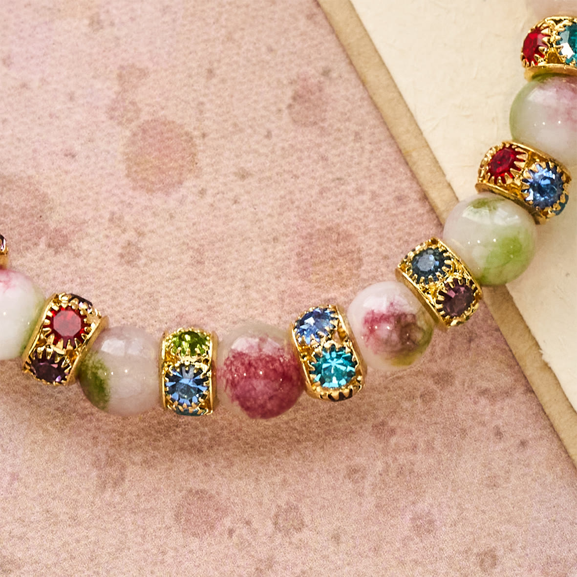 Gli accenti scintillanti rispecchiano la luminosità della grazia di Cristo, abbinati alle delicate tonalità della tormalina che riecheggiano la Sua dolce cura. Ogni luccichio è un omaggio al Suo amore vibrante e costante, avvolgendo la tua giornata in una silenziosa devozione. - Dono di devozione ardente