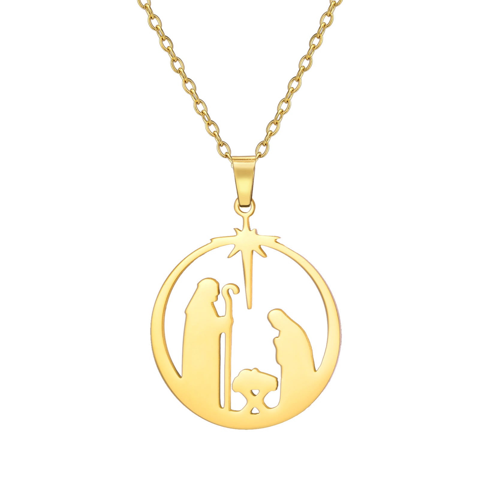 Collana con la Stella di Betlemme, unica in stile moderno, raffigurante la scena della Natività di Gesù e la sua fede sacra.