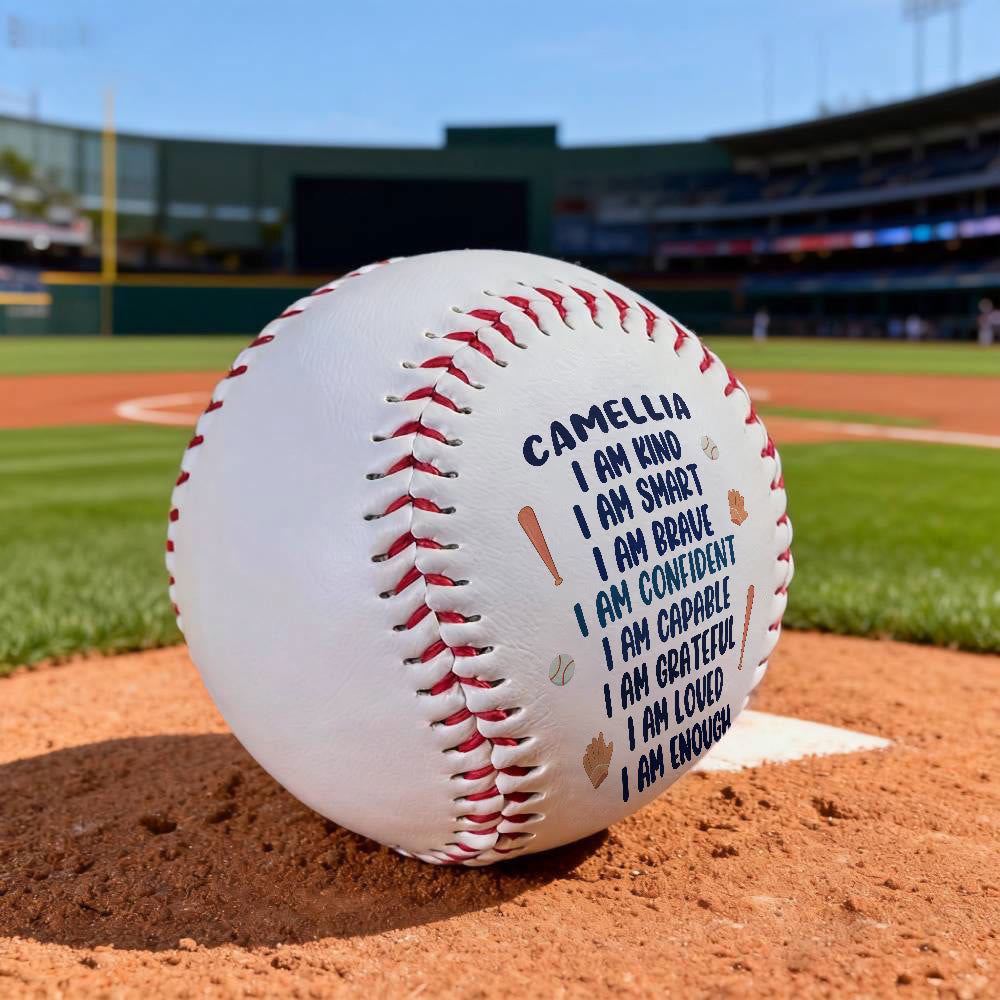 Regalatelo come simbolo significativo di autostima radicata nell'amore di Dio. Questa palla da baseball coniuga lo stile sportivo con l'eterna verità che sei sufficiente, amato e capace in Lui.