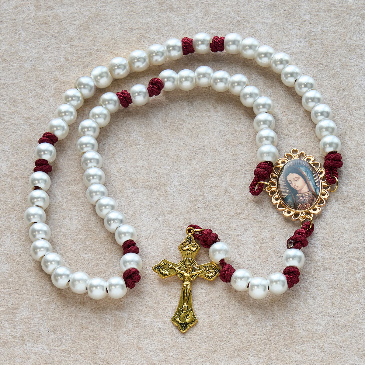 Al centro risplende la tenera presenza di Nostra Signora di Guadalupe, il cui sguardo compassionevole attira i fedeli nel suo manto di protezione. Ella si erge come Madre, intercessore e guida gentile, invitando l'anima a pregare con fiducia e umiltà. - Fede personalizzata: il tuo rosario unico