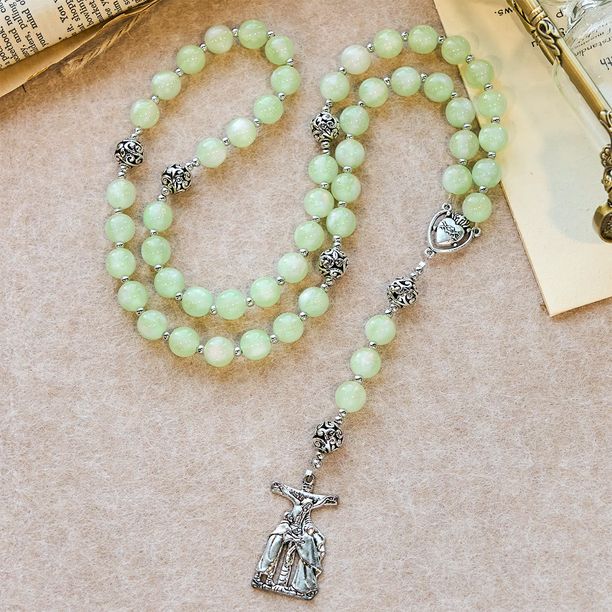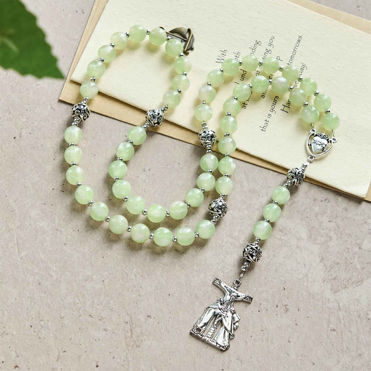 Questo rosario che cambia colore dal verde al rosso con luce UV avvolge la fede in una vivida trasformazione. I tenui grani verdi virano al rosso caldo sotto la luce UV, rispecchiando il viaggio dell'amore di Cristo: dalla silenziosa speranza del Suo ministero (verde) al profondo sacrificio della croce (rosso). La croce devozionale di Cristo àncora ogni preghiera, legando ogni cambiamento di colore alla Sua sacra storia. - Fede trasformativa in ogni perla