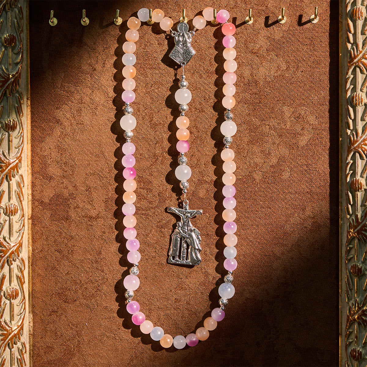 Ogni perla, fresca, morbida e luminosa, invita a un ritmo costante di preghiera. La palette pastello evoca calma e purezza, trasformando ogni decade in una pausa di rinnovamento e gioia silenziosa. - Un dono di speranza in ogni stagione